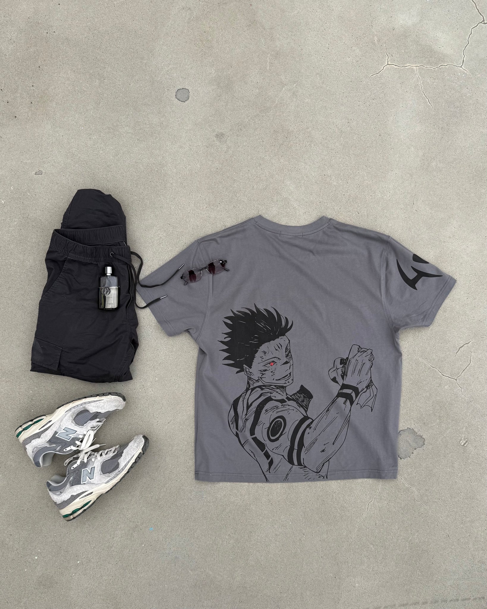 The SUKUNA tee channels the energy of the King of Curses. Heavy, oversized, and printed with brutal precision—this piece fuses anime power with clean streetwear execution.